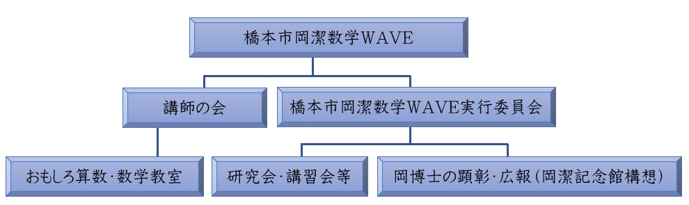 橋本市で情緒を育み、数学分野のみならず日本文化や道徳教育の面でも今なお社会に影響を与え続ける岡潔の事績を顕彰するとともに、「数学・算数が楽しい」「面白い」と感じる子どもたちが一人でも多く育ってほしいという願いから、数学教育の推進を中心に、文化を育むまちづくりに寄与することを目的として、平成21年8月「橋本市岡潔数学WAVE」を設立しました。